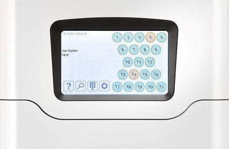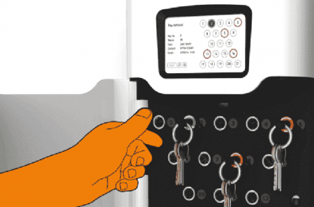 Toegang tot de Traka21 kast is mogelijk via het handige touchscreen waarop u uw pincode moet ingeven. Zo kan iedereen 24/7 bij de sleutels waar hij recht toe heeft. De sleutel waar een persoon geen toegang tot heeft blijft geblokkeerd. Voor Traka21 heeft u geen verbinding met een netwerk of computer nodig. Het systeem werkt via netvoeding en is optioneel beschikbaar met een back-up batterij.