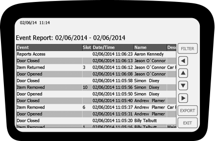Met Traka21 kunt u een gedetailleerde geschiedenis van de sleutels en gebruikers opvragen. Zo kunt u nagaan wie welke sleutel in zijn bezit heeft gehad en op welk moment. Deze lijst kan eenvoudig van het scherm worden afgelezen of geëxporteerd via de USB poort. Ook het autoriseren van personen kan via het touchscreen of via een import met USB tot maximaal 1000 gebruikers. Zo houdt u altijd de controle op uw sleutelbeheer.